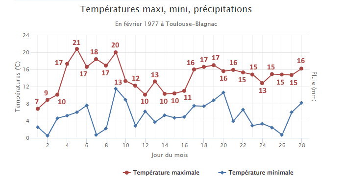 Températures observées à Toulouse en février 1977 - via infoclimat.fr