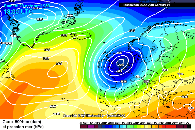 Situation météo le samedi 28 octobre 1933 - réanalyse via meteociel.fr
