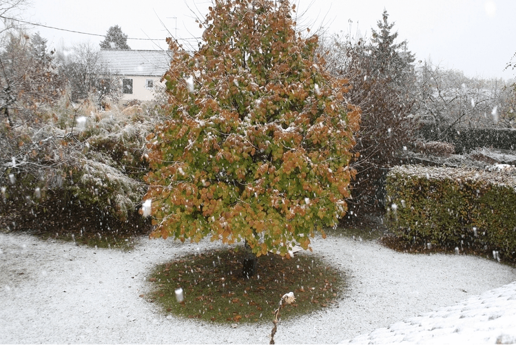 Neige à Jouy-le-Potier (45) le 30 octobre 2008 - photo Olivier Renard via infoclimat.fr