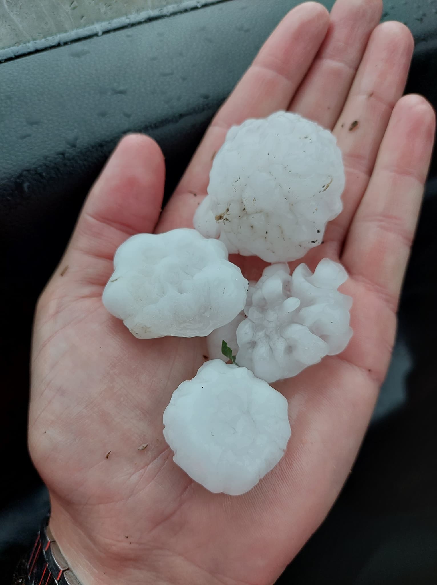 Grêlons d'important diamètre près de Nages-et-Solorgues (30) - Photographie : Amandine Huber via Météo-Languedoc